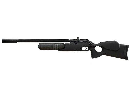 The FX Crown takes everything that made the Impact such a groundbreaking rifle, and puts that adjust-ability into a standard sporter stock. But not just any stock, this FX Crown features an all-weather synthetic stock. Truly a stock that matches the quality and precision engineering that is houses the internals of the Crown. The FX Crown is a shooters dream. Much like a high performance race car, you can adjust and fine tune the Crown to achieve the highest accuracy of perhaps any rifle! Starting with the new FX Smooth Twist X barrel system. This new system allows you to now only change the caliber of the rifle (from .177 up to .30 cal) but you can also now exchange the barrel liner itself to further tailor your barrels twist rate and choke to the pellet of your choice. The Smooth Twist X system is housed in a fully shrouded barrel to keep things ultra quiet. In the coming months expect more and more barrel liner options to be offered as add on accessories for your FX Crown. Adjustability has no limits with the FX Crown. At the base of stock are housed two pressure gauges; one to show the pressure of the removable 480cc carbon fiber bottle, the other the regulator pressure. This regulator can be adjusted externally as well. Other adjustments include a hammer spring adjustment and a valve flow adjuster on the left side of the stock. The adjustable two-stage trigger is easily called match grade and is simply one of the best triggers on the market today.
