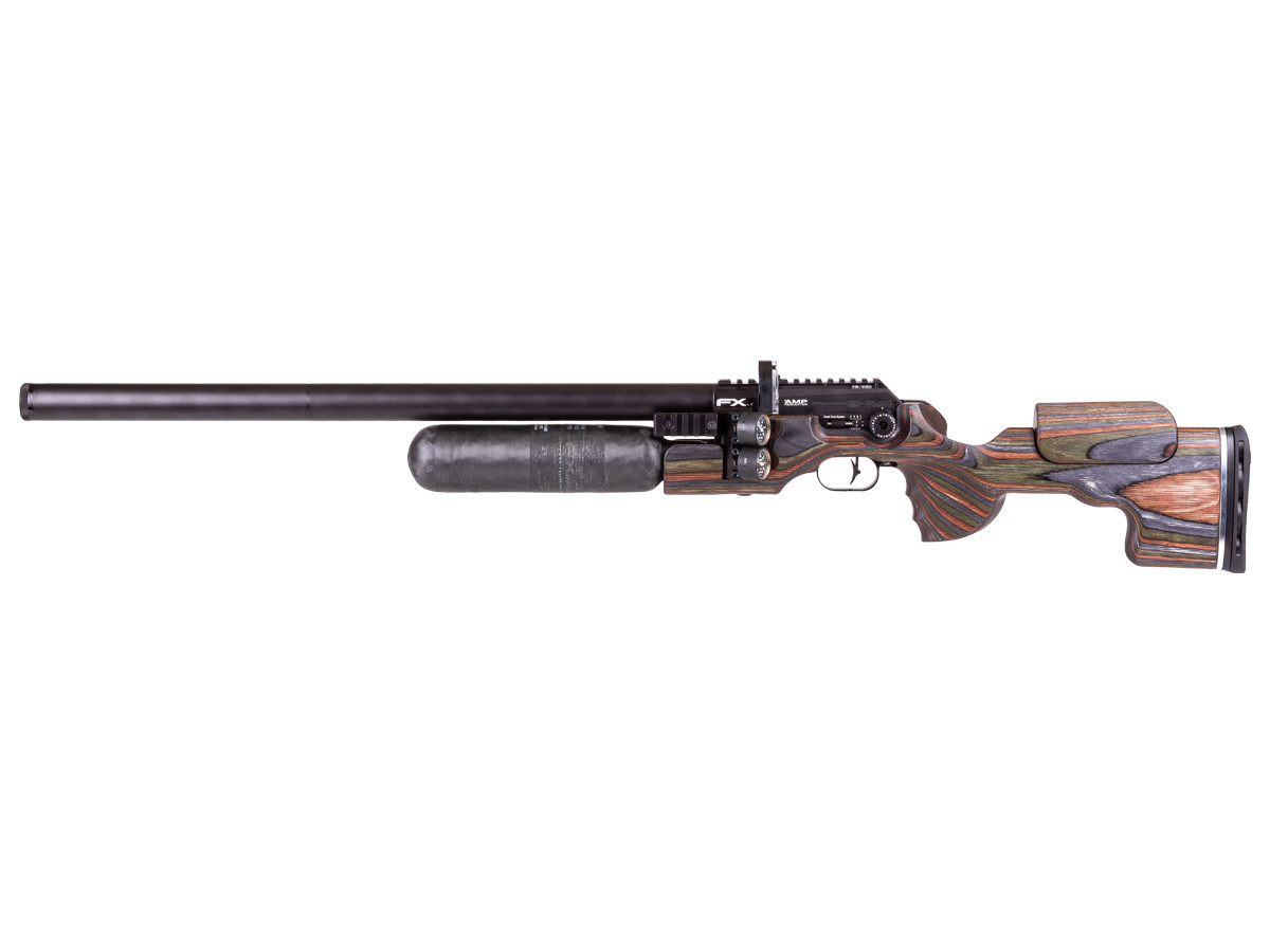 The FX King makes it easy for you to keep an eye on the performance of every shot without losing your aim because it gives you dual angled Wika gauges on the block: one for regulated pressure and one for bottle pressure. You also get steady performance and power with a rigid barrel because of the Dynamic Block, the over the barrel Dynamic Plenum, and the AMP MKII regulator.
